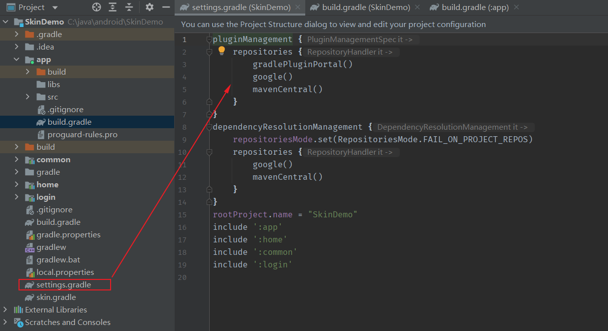 这个要麻烦一点,主要是细心。我们先来看看项目中gradle的组成